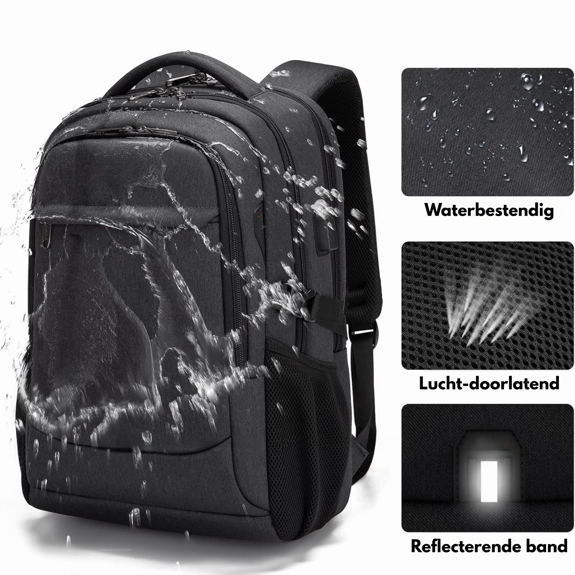 - Hållbart och vattenavvisande material för skydd mot regn.
